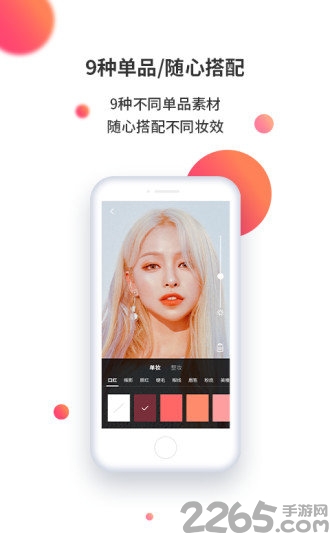 提供9种不同的美妆单品素材,让用户自由搭配不同的妆效。