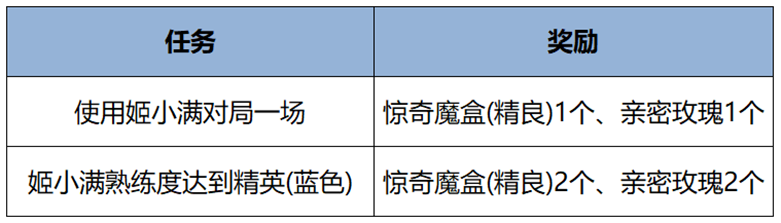 活动详情:姬小满玩法升级,前往英雄试炼活动,可领取姬小满英雄限免卡*14天(如已拥有英雄则不可获得),活动期间可免费试用零食大作战皮肤,完成任务还可领取奖励。